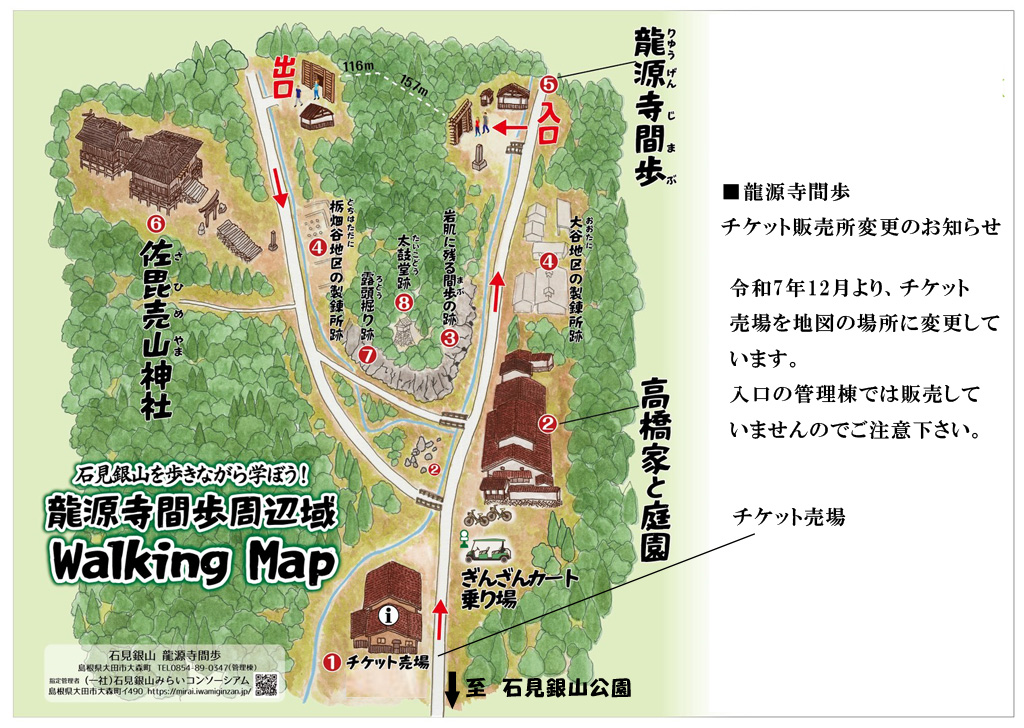 令和7年12月より、龍源寺間歩のチケット売り場を変更しています。間歩入り口の管理棟では販売していませんのでご注意下さい。