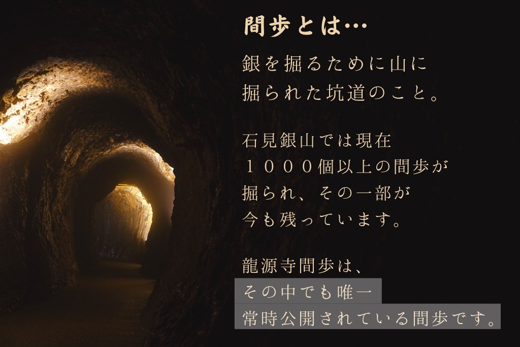 - 龍源寺間歩までの行き方:石見銀山公園から龍源寺間歩までの道は観光車両は通行できません。徒歩またはレンタサイクル、ぎんざんカートをご利用下さい。