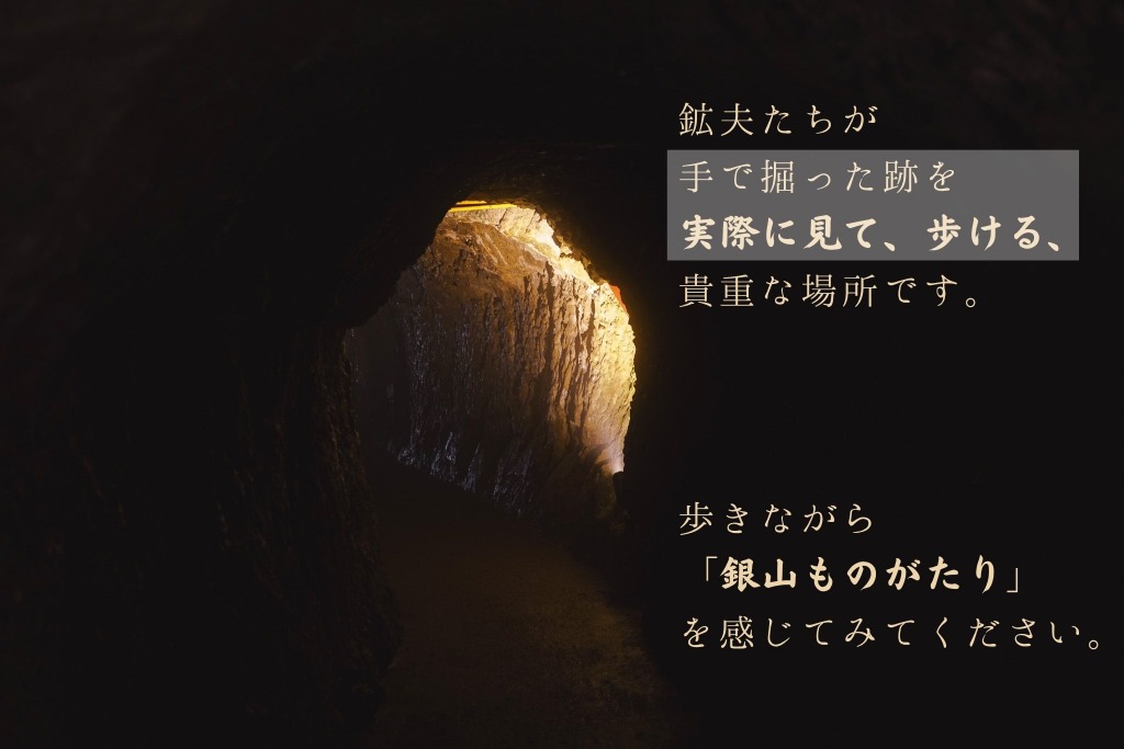 龍源寺間歩は石見銀山で唯一常時見学できる間歩(坑道)です。江戸時代中頃の開発で入口から約160メートルが公開。壁面にはノミで掘った跡など当時の坑内の様子を知ることができます。